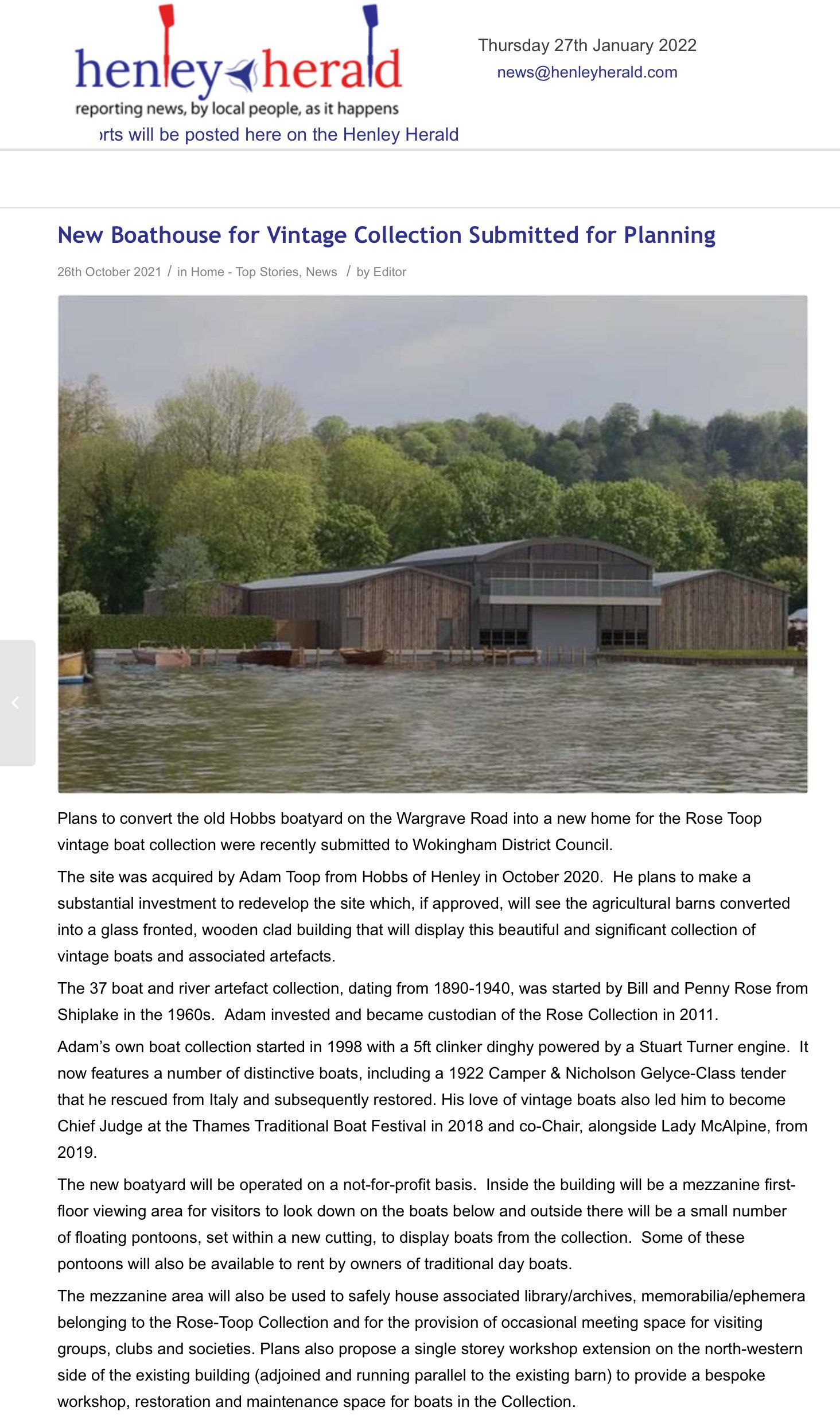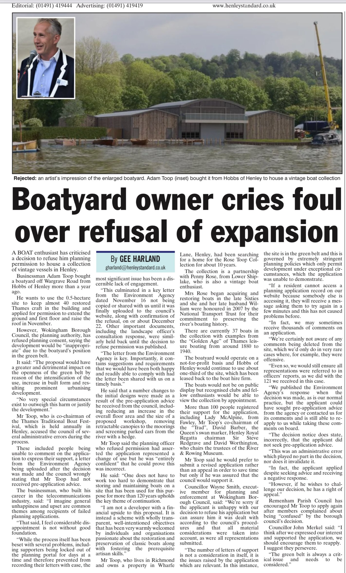 I am not a developer with a financial upside to this proposal. It is instead a scheme with wholly transparent, well-intentioned objectives that has been very warmly welcomed by individuals and organisations passionate about the restoration and preservation of classic boats along with fostering the prerequisite artisan skills. Equally, it is a scheme that I was delighted to see so warmly welcomed by the residents of Henley and a significant number of WBC residents as a dramatic improvement to the visual amenity of this important part of the riverbank, offering improved access to the river for certain user groups and the promise of sensitive rejuvenation of this important site.